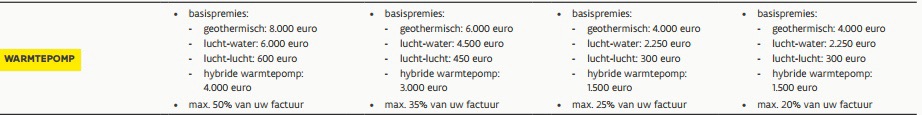 • Maar voor de laagste inkomenscategorie kan de premie oplopen tot €8.000 (geothermie) of €6.000 (lucht-water).