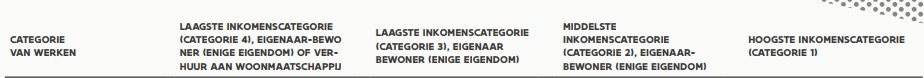 Er zijn vier inkomenscategorieën, zoals bepaald op de website van de overheid.
